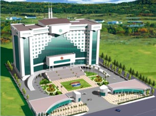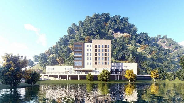 四川鄉(xiāng)城水電站基地工程總用地面積約20842平方米,總建筑面積13578平方米,規(guī)劃布局中因地制宜的將建筑群圍繞橢圓型中心廣場(chǎng)布局,主要建筑取南北向?yàn)橹饕?。建筑群的主要功能包括辦公樓、后勤樓、高管宿舍、宿舍樓四部分。